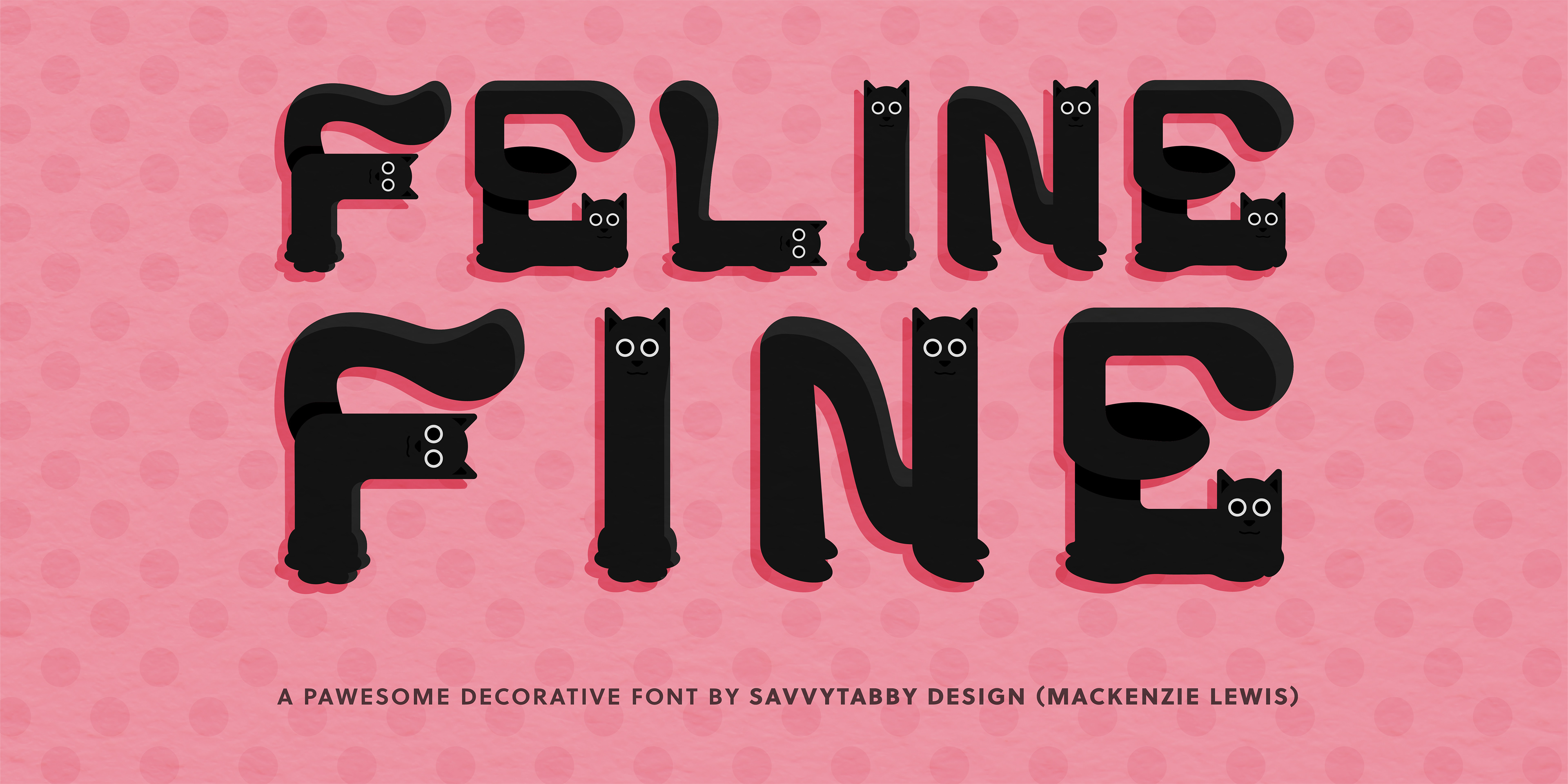 The Feline Fine font is inspired by this sweet and sassy girl, Creek, who is one of my two pawtners in crime. She enjoys becoming many shapes and has a fondness for laying on different textures.